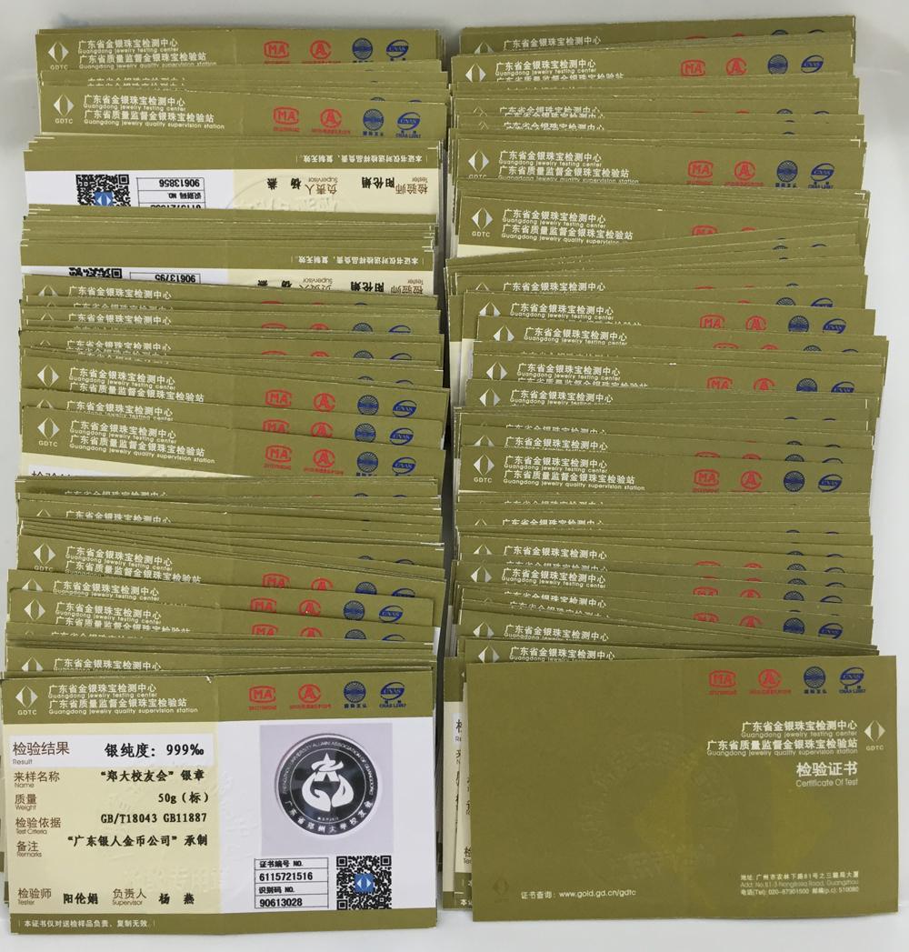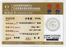 • 廣東省質(zhì)監(jiān)金銀紀(jì)念幣金銀純度鑒定證書