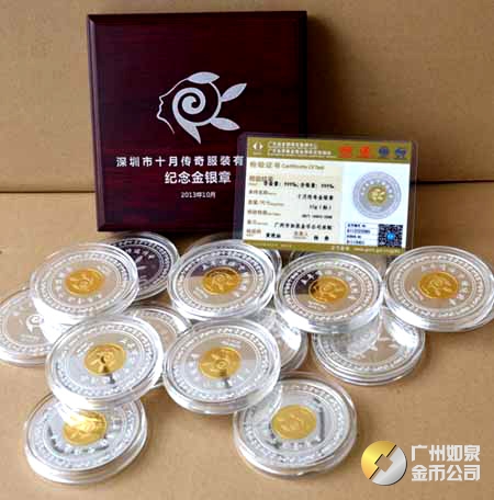 2013年11月深圳市十月傳奇服裝公司純銀鑲金紀念幣定制