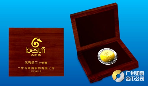 2013年11月廣東百斯盾公司銀包金紀念幣生產制作銀鑲金紀念章