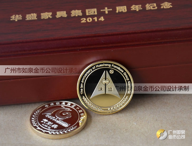 中山華盛公司周年慶定制純金紀念幣鑲水晶