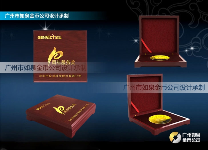 深圳市金溢科技公司企業定制紀念金牌向滿十年員工發放了紀念公司成立十周年金牌和周年慶定制純金銀紀念幣