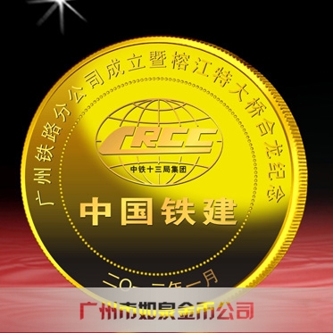 定制中國鐵建大橋合龍通車定制紀(jì)念千足金金幣制作