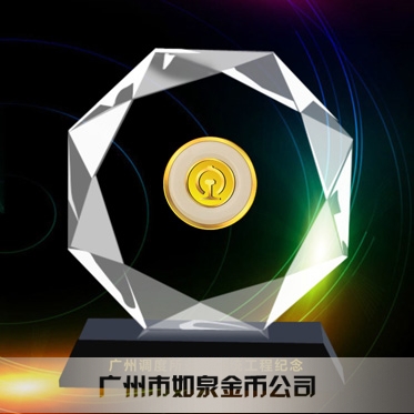 定制廣鐵集團定制金鑲玉紀念幣鑲水晶擺件