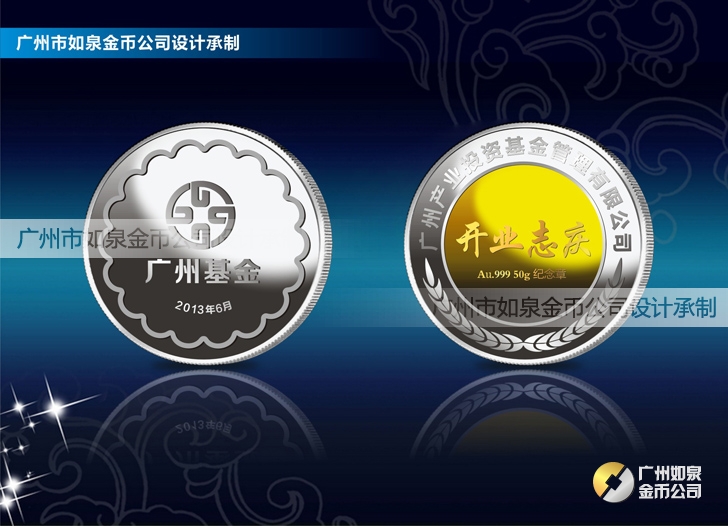 廣州產(chǎn)業(yè)基金定制純銀鑲金紀(jì)念幣制作銀鑲金紀(jì)念幣
