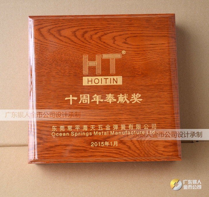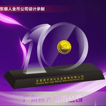 2015年1月:東莞海天五金廠慶活動紀念幣鑲水晶金銀幣定制