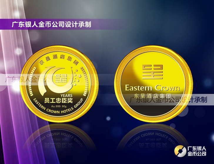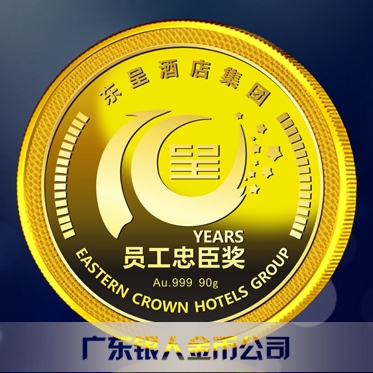 2015年1月:東呈酒店集團定做十年老員工千足金紀念金牌定制