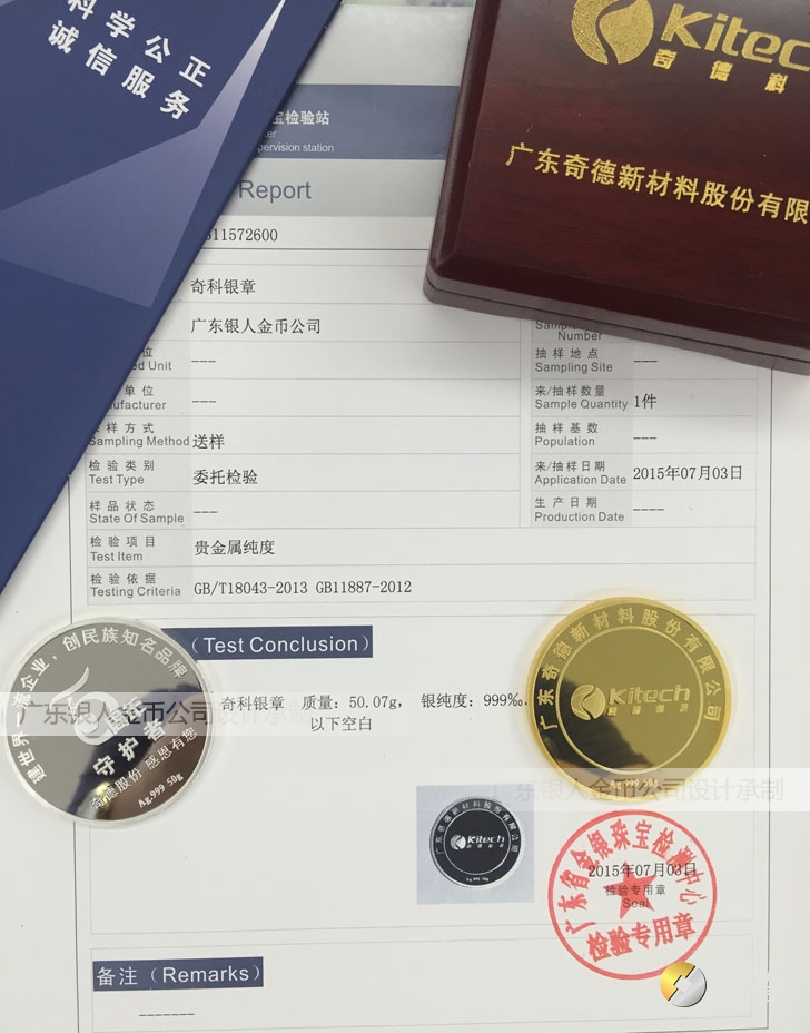 廣東銀人金幣公司承接客戶個性化定制的金銀幣、金銀章、金銀條、金銀牌、金銀盤均由國家質監部門、嚴格檢測、權威鑒定: