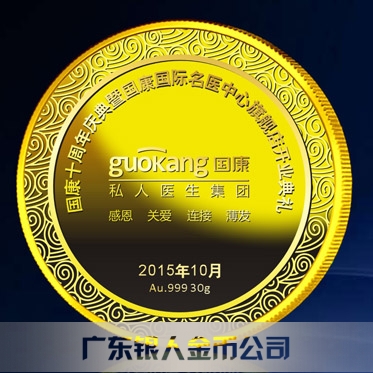 2015年9月定制 深圳市國康醫院十年員工純金金牌定制