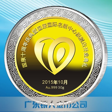 2015年9月定制 深圳國康銀鑲金紀念幣定制、純銀包純金幣定制