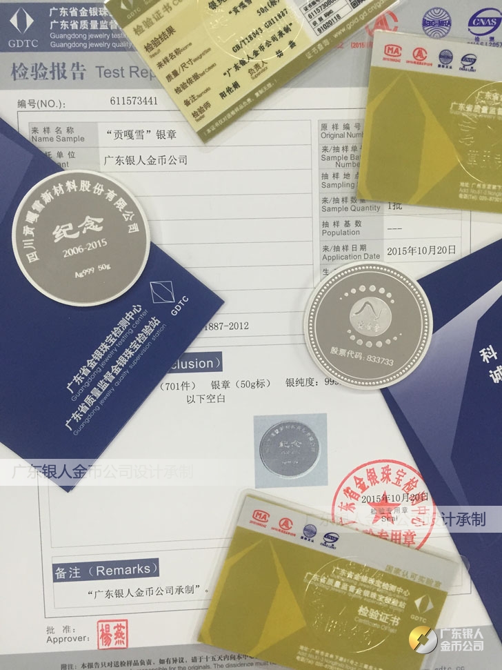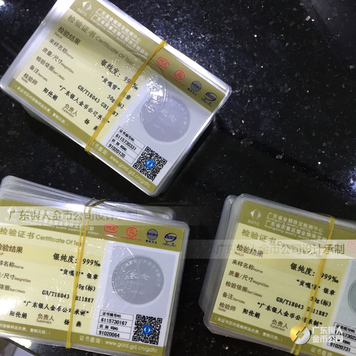 廣東銀人金幣公司承接客戶個(gè)性化定制的金銀幣、金銀章、金銀條、金銀牌、金銀盤均由國家質(zhì)監(jiān)部門、嚴(yán)格檢測(cè)、權(quán)威鑒定: