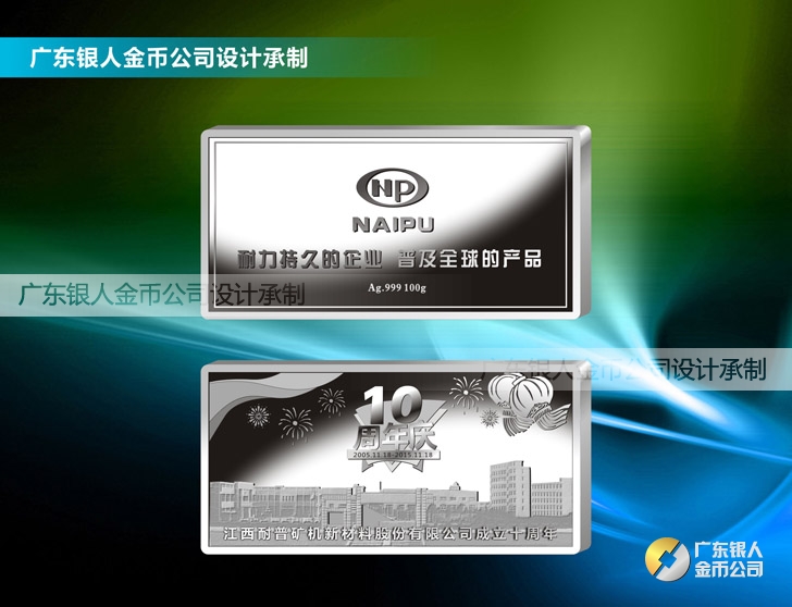 2015年10月定做 江西耐普公司鑄造純銀銀條加工定做企業(yè)紀(jì)念銀條