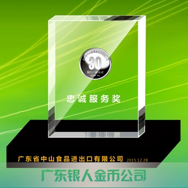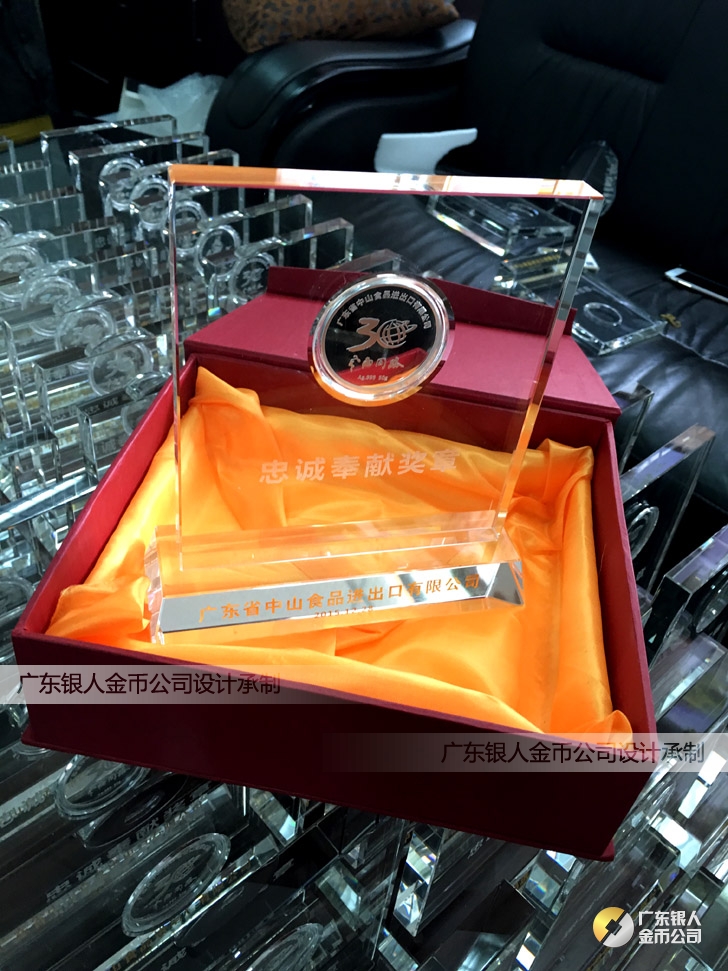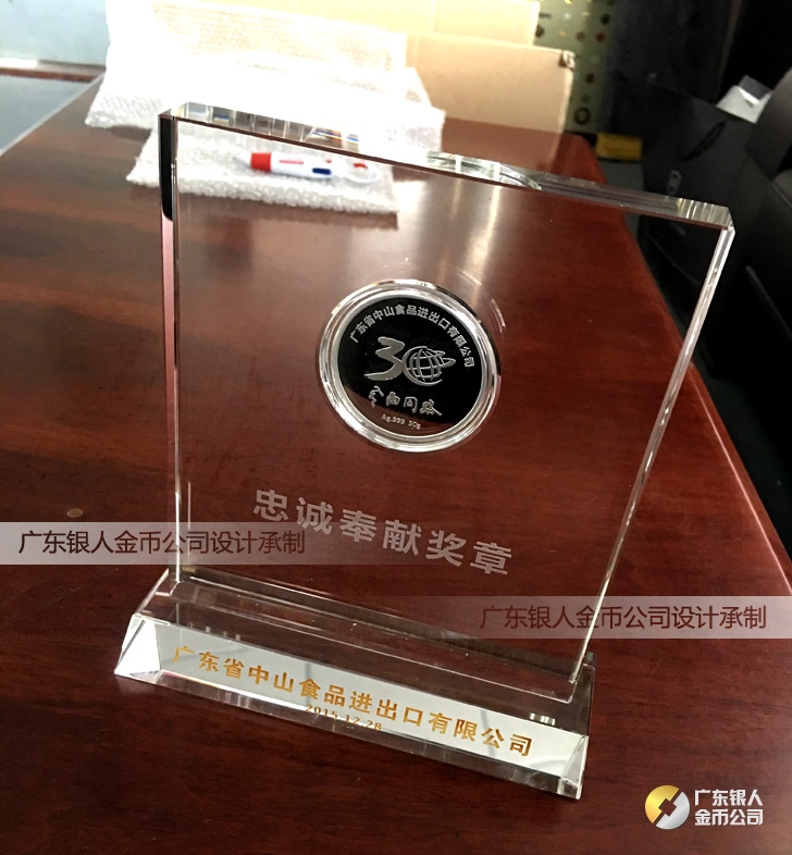2015年11月制作 中山市食品進出口公司純銀紀念幣鑲水晶擺件