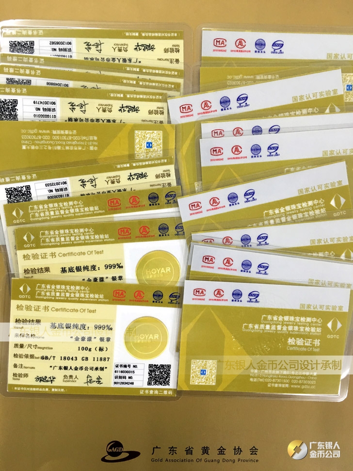 廣東銀人金幣公司承接客戶個(gè)性化定制的金銀幣、金銀章、金銀條、金銀牌、金銀盤均由國(guó)家質(zhì)監(jiān)部門、嚴(yán)格檢測(cè)、權(quán)威鑒定: