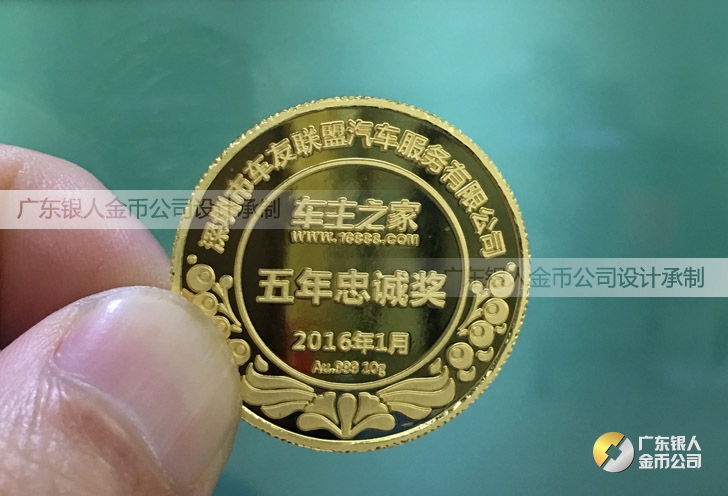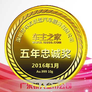 2016年1月生產 深圳車主之家優秀員工純金獎牌生產制作廠家