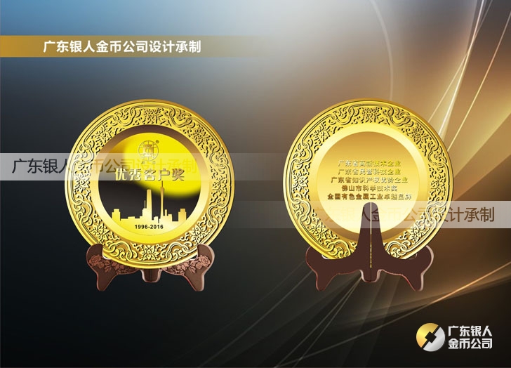 2016年4月定制 廣亞鋁業純金獎盤黃金盤純金立體擺件定制
