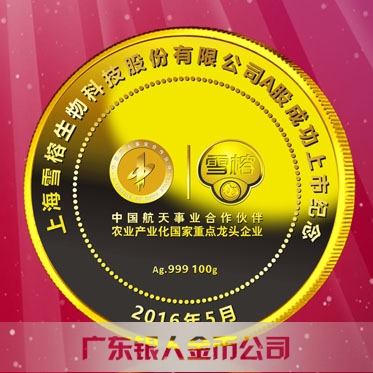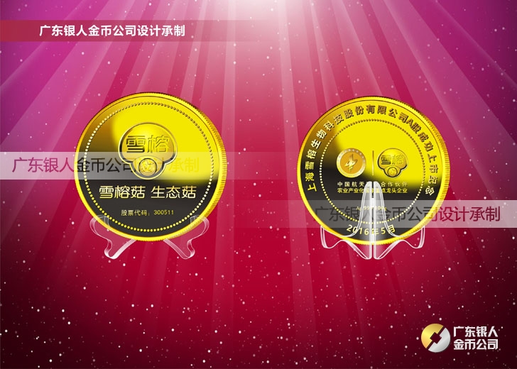 2016年4月定制 上海雪榕生物公司股票發行純金紀念幣定制