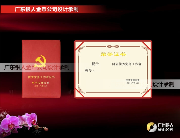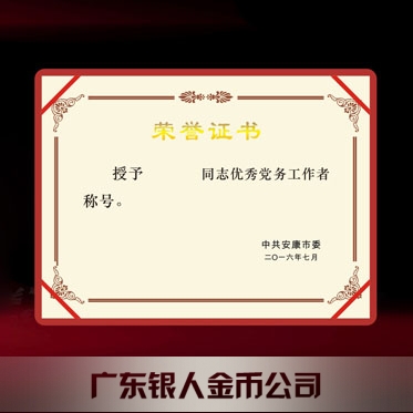 2016年6月制作 安康市委組織部優秀黨務工作者榮譽證書制作