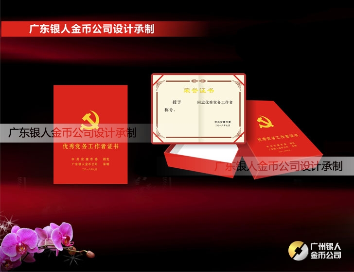 中共中央/中組部“全國優秀共產黨員”獎章、證書與“全國優秀黨務工作者”獎章、證書和“全國先進基層黨組織獎牌、證書(定制標準)