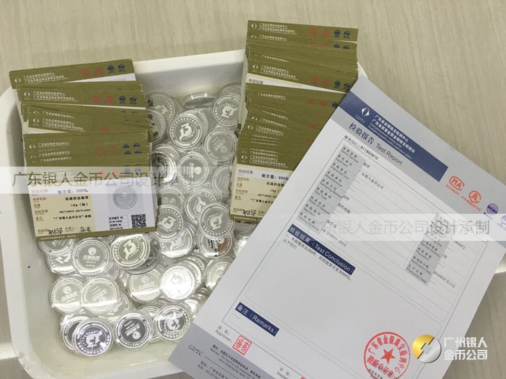 廣東銀人金幣公司承接客戶個性化定制的金銀幣、金銀章、金銀條、金銀牌、金銀盤均由國家質監部門、嚴格檢測、權威鑒定: