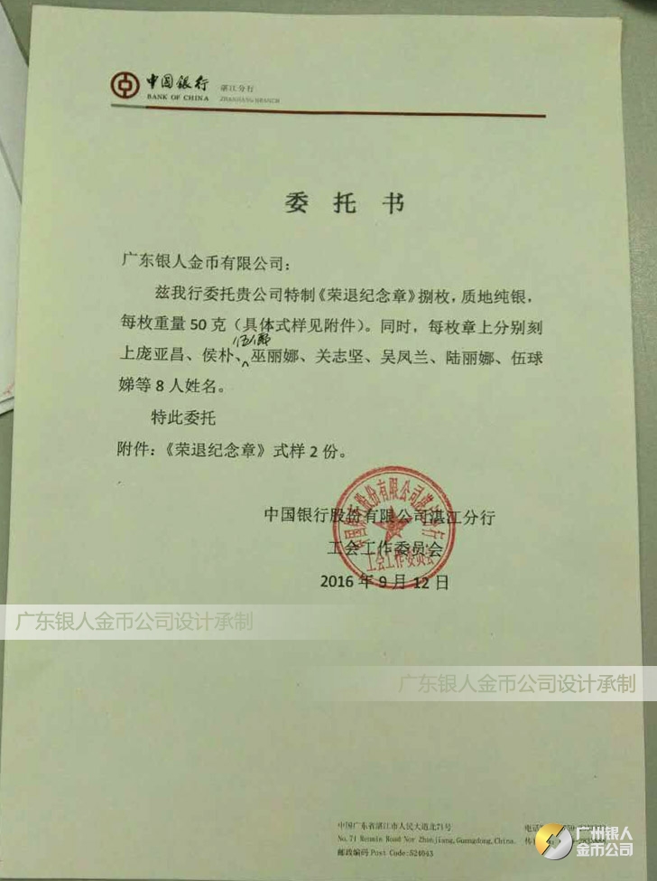2016年8月 湛江定制 中國銀行定制純銀銀幣、純銀銀章