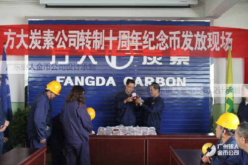 金秋九月,在公司喜迎轉制十周年之際,為感謝全體員工的辛勤付出,激發廣大干部員工工作熱情,公司特為每位員工定制、發放一枚純銀紀念幣。此枚紀念幣正面為方大炭素全景,背面為方大集團“logo”圖案,極具收藏價值。
