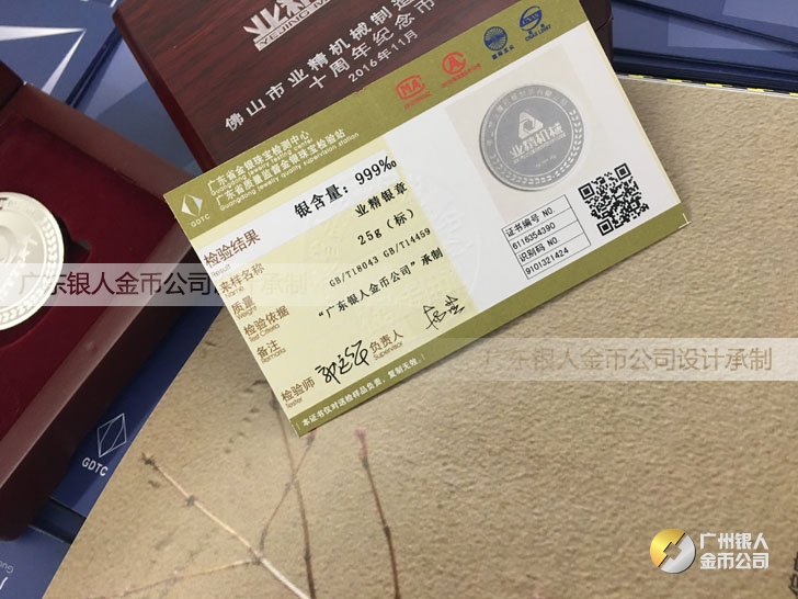 廣東銀人金幣公司承接客戶個性化定制的金銀幣、金銀章、金銀條、金銀牌、金銀盤均由國家質監(jiān)部門、嚴格檢測、權威鑒定: