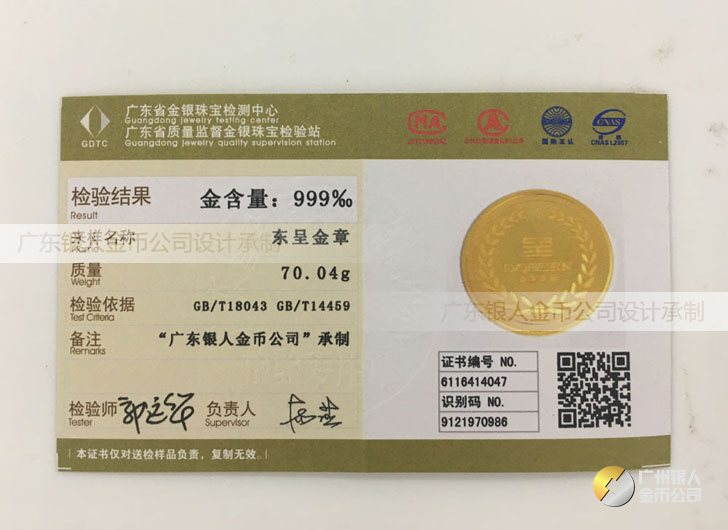 廣東銀人金幣公司承接客戶個性化定制的金銀幣、金銀章、金銀條、金銀牌、金銀盤均由國家質監部門、嚴格檢測、權威鑒定: