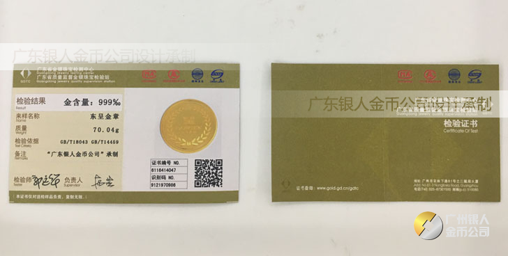 廣東銀人金幣公司承接客戶個性化定制的金銀幣、金銀章、金銀條、金銀牌、金銀盤均由國家質監部門、嚴格檢測、權威鑒定: