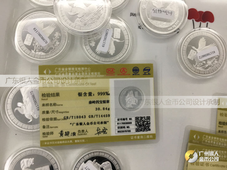 廣東銀人金幣公司承接客戶個性化定制的金銀幣、金銀章、金銀條、金銀牌、金銀盤均由國家質監部門、嚴格檢測、權威鑒定: