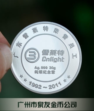 2011年7月 廣東雪萊特公司優秀員工純銀紀念獎品銀幣制作