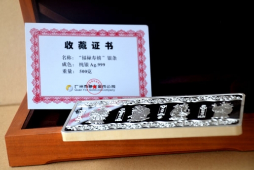 2012年12月廣東一力集團成立十周年紀念銀條定制銀磚