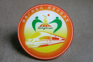 廣鐵集團——鐵路系統列車員佩戴的2010年廣州亞運會廣鐵集團開展的“服務廣州亞運、感受中國速度”文明星級高鐵體驗活動亞運會胸章、亞運會徽章。