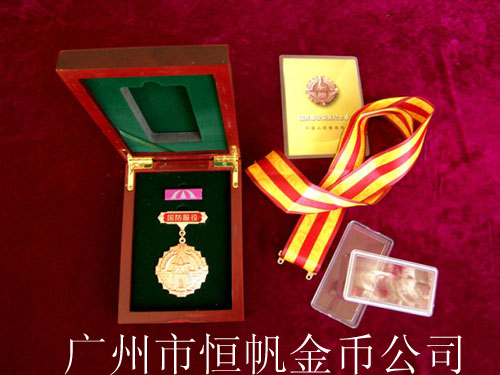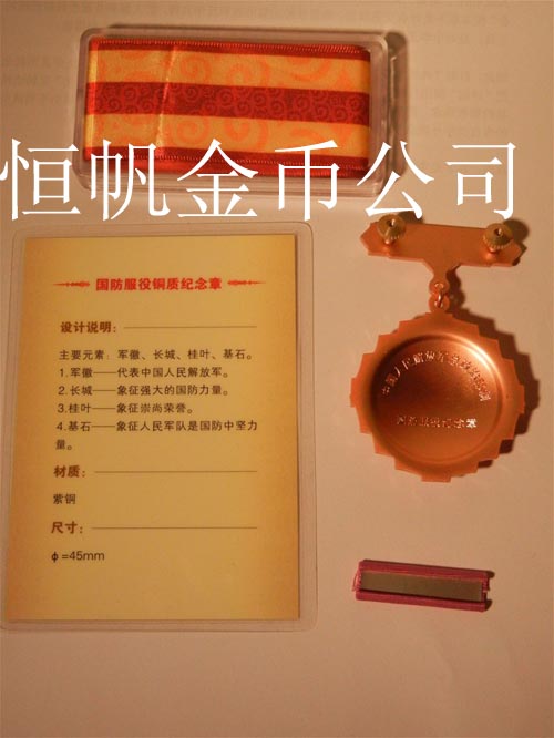 使用材質:金、銀、銅質紀念章分別按銅質鍍金、銅質鍍銀和紫銅材質制作,彰顯了榮譽的層次性。同時,每枚證章均配有木盒和說明卡片、綬帶,紀念章、略章。(見圖片—2、3、4、5)
