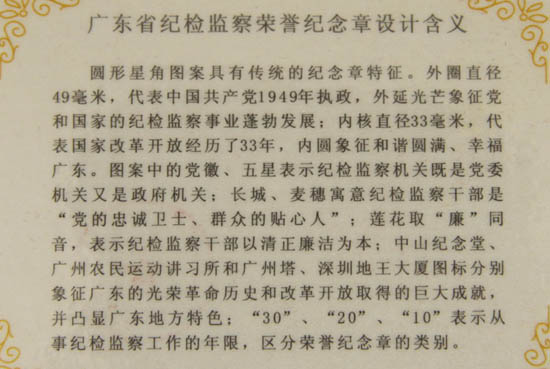 廣東省紀檢監(jiān)察榮譽紀念章(圖)