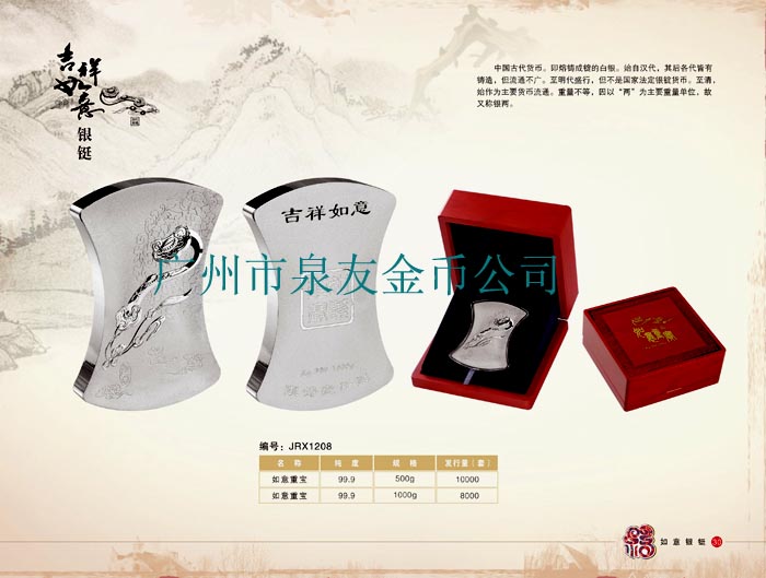 吉祥如意銀條、吉祥如意銀鋌、吉祥如意銀錠、吉祥如意銀磚(圖)