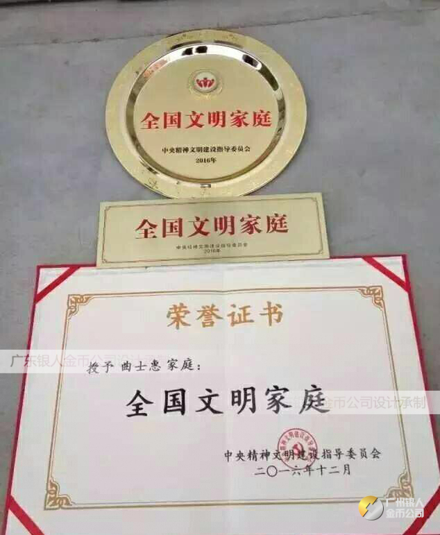 “全國文明家庭”獎牌、獎章和榮譽證書(圖)