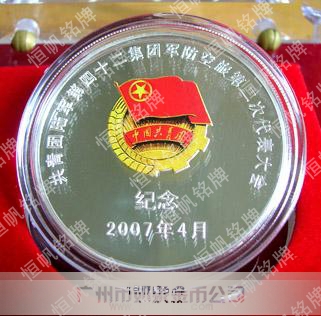 金屬材料,高檔紀念章紀念幣,金屬模具沖壓,雙面。可配精美錦盒外包裝。表面有塑料盒包裹。高貴徽章紀念章。