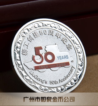 廣西柳工創(chuàng)建50周年紀(jì)念勛章,純銀紀(jì)念章,純銀勛章