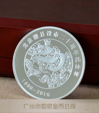龍泉撤縣設市20周年紀念章,純銀紀念銀章定做