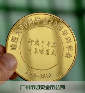哈爾濱醫科大學20周年定做純金紀念幣,定做純金紀念章