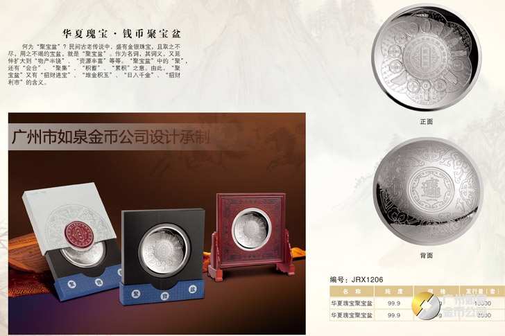 廣州市如泉金幣公司依托上海造幣廠和深圳國(guó)寶造幣廠等造幣公司以及金銀制品廠,設(shè)計(jì)定做紀(jì)念幣、紀(jì)念章、金銀幣、金銀章、金銀條,采用造幣工藝、選用千足金銀,個(gè)性定制金幣、定做銀幣、訂做金條、訂制銀條、制作紀(jì)念銀幣、制造紀(jì)念金幣、加工紀(jì)念銀章、生產(chǎn)紀(jì)念金章,純金純銀鑄造、全部國(guó)檢、權(quán)威檢測(cè)。