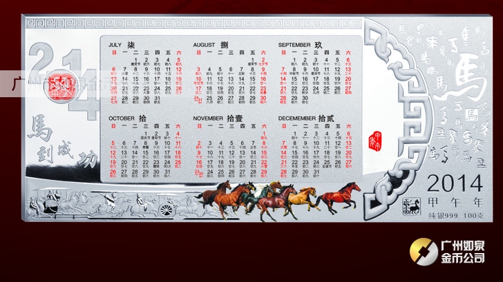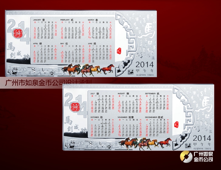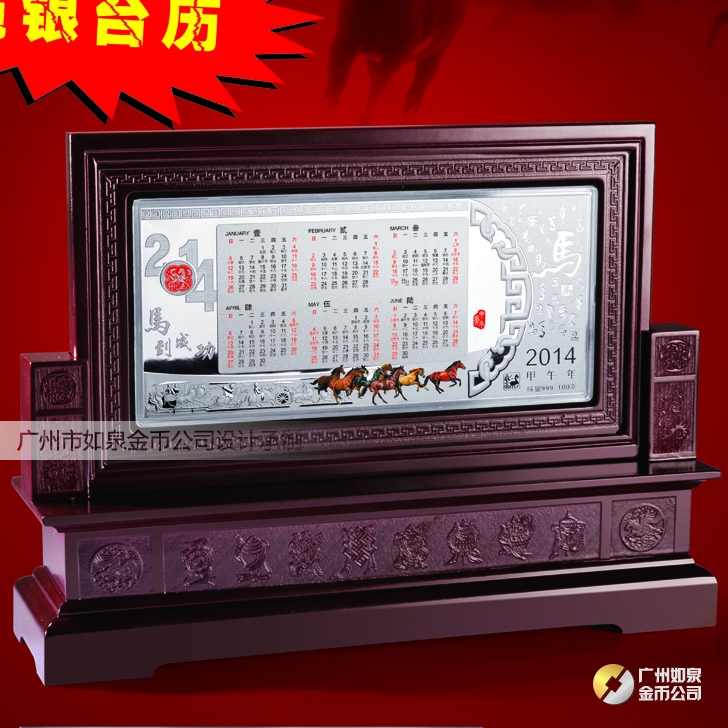 2014年馬年純銀臺歷定購,純銀999足銀貴金屬擺件訂購
