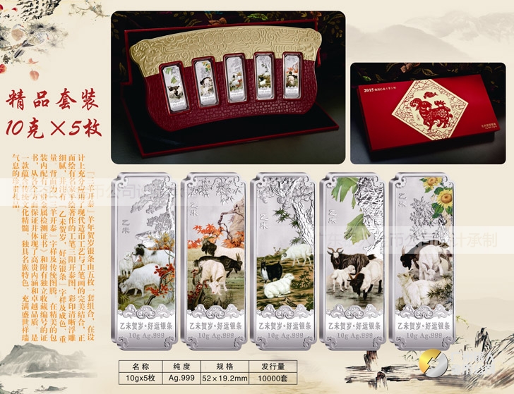 【Au.999純銀羊年賀歲銀條重量規格】 5克x5根、10克x5根、20克x5根盒裝、套裝