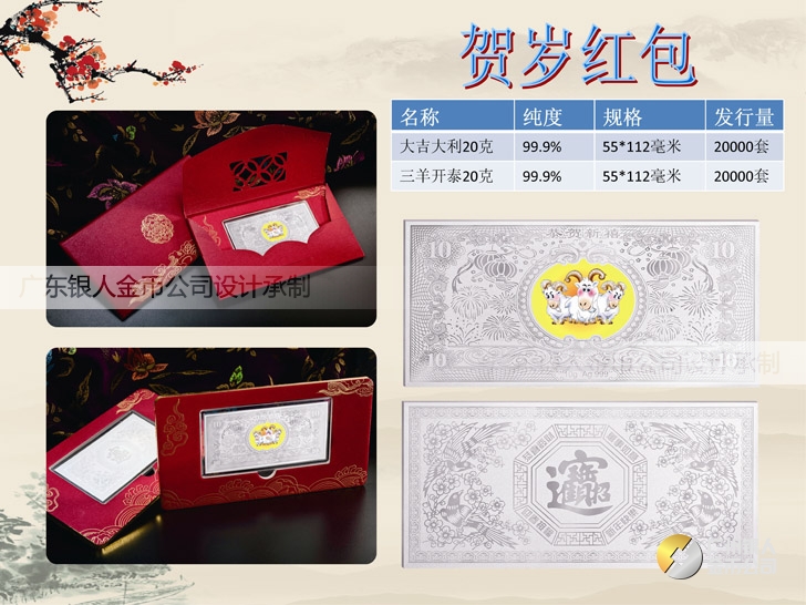 2015年20克銀鈔羊年賀歲紅包利是封春節壓歲錢