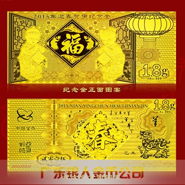中國金幣總公司發行2015年迎春賀歲純金紀念金鈔