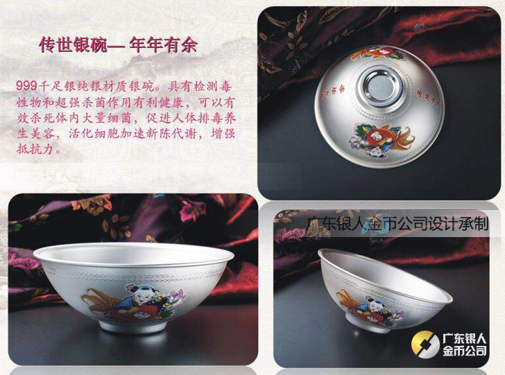 年年有余銀碗批發定制、純銀餐具定做批發銷售