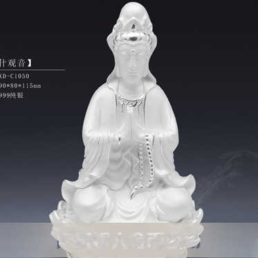 純銀觀音菩薩擺件、觀音純銀擺件