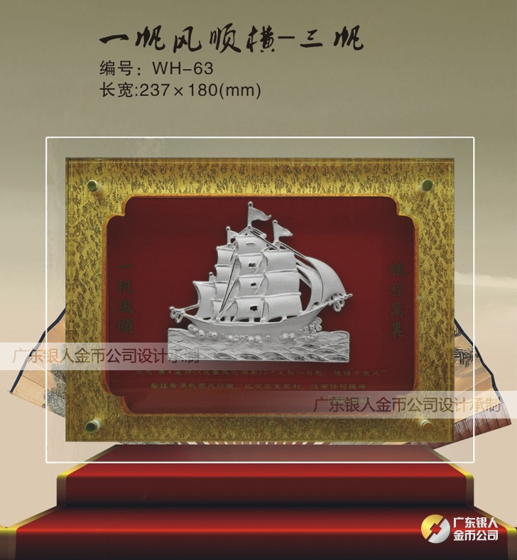 三帆屏風一帆風順純銀擺件