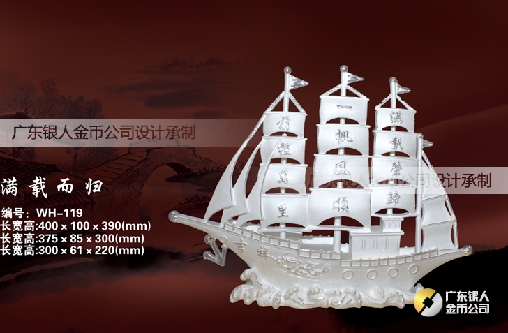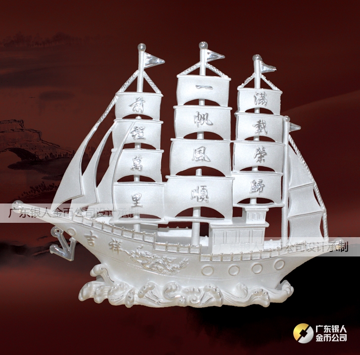 前程萬里滿載而歸純銀帆船擺件禮品定購個性定制定做